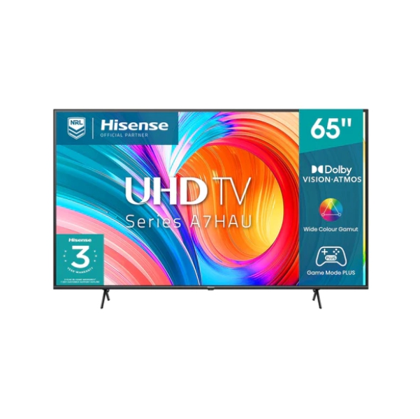 The Hisense UHD 4K Series A7HAU TV features a 4K AI Upscaler that optimises picture quality and offers a premium viewing experience. Wide Colour Gamut generates over a billion shades and gradients for stunning image clarity and striking contrast. With high-end features such as Dolby Vision HDR and Dolby Atmos, it replicates the cinema experience at home. Game Mode Plus offers next-gen gaming with Auto Low Latency Mode (ALLM) and Variable Refresh Rate (VRR) that makes sure you’re always ahead of the game.